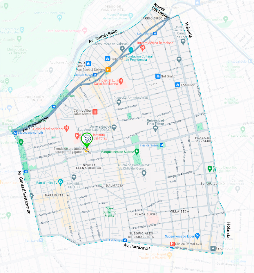 c) La zona de cobertura gratuita está delimitada entre: Portugal con 10 de Julio / Av. Irarrázaval con Holanda / Nueva Los Leones con Av. Andrés Bello / Av. Providencia con Av. Alameda Libertador Bernardo O'Higgins. (Le sugerimos validar por WhatsApp o llamada telefónica al +569 3908 2787 para verificar que su dirección de despacho se encuentre dentro del area de cobertura gratuita). Si no se encuentra dentro del area de cobertura gratuita, podrá pasar a retirar su compra en nuestro local ubicado en Diagonal Rancagua 938, Providencia.